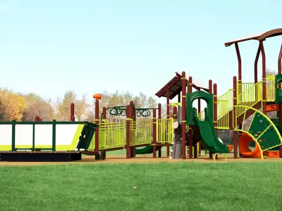 - A smaller structure with a wider variety of features (climbers, swings, etc.)