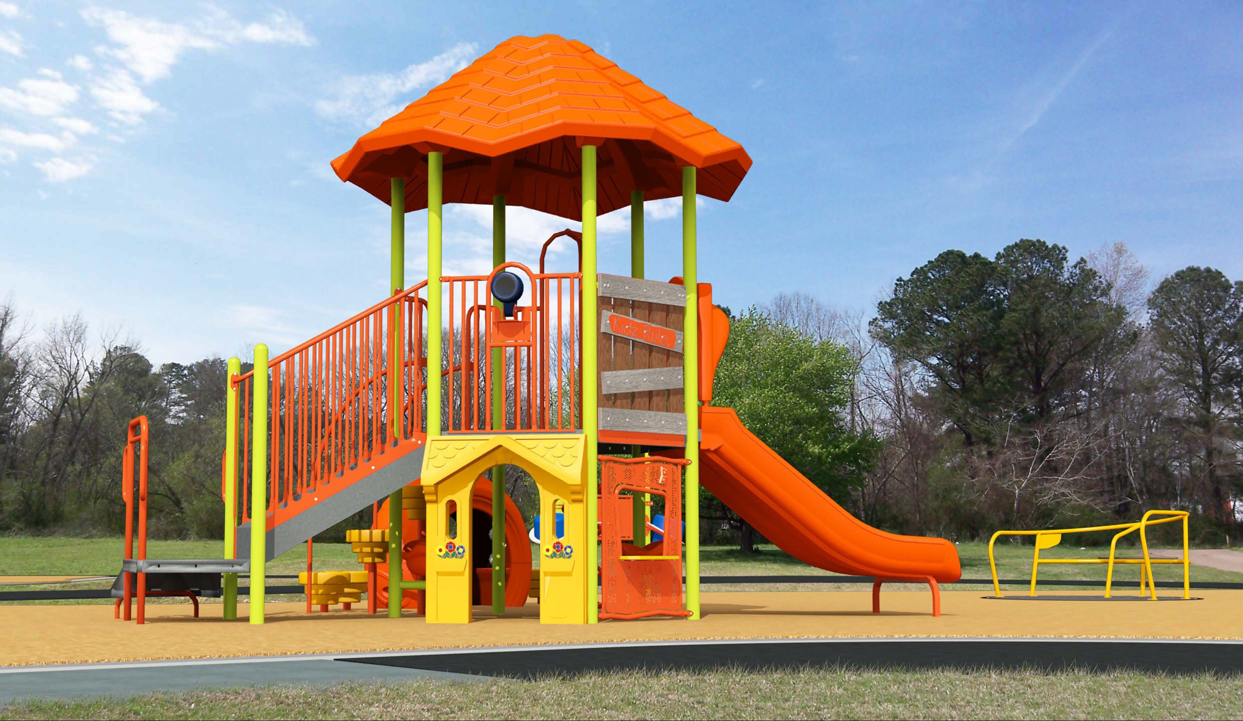 - A longer, fully ramped play structure